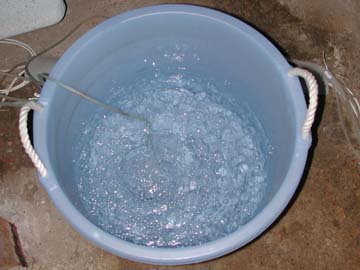 タライに水+0.5%食塩(60Lですと300gの塩)を入れてエアレーションしておきます。 |