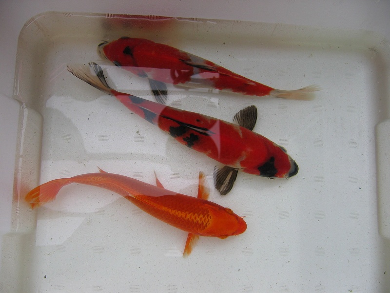 H17.3.11川崎錦鯉店より購入。23CM程、最もお気に入りの昭和(中央)