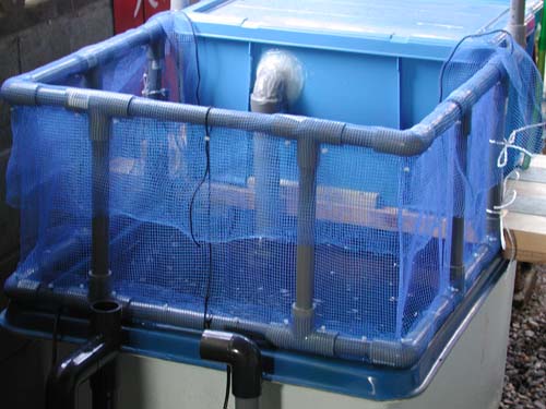 400LFRP水槽にも飛び出し防止ネットを作った。(左写真)