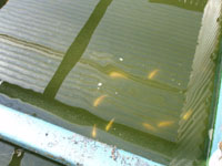 おお〜、、おっきい丸プールに稚魚がうじゃうじゃ泳いでる泳いでる!。