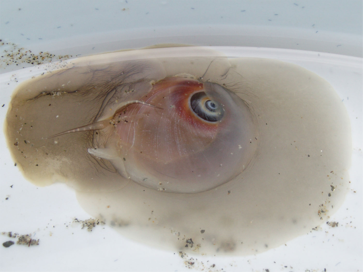 掴んでみると、激痩せ状態でした。 左写真のような感じ。身がなくて甲羅と体の間がスカスカです。
