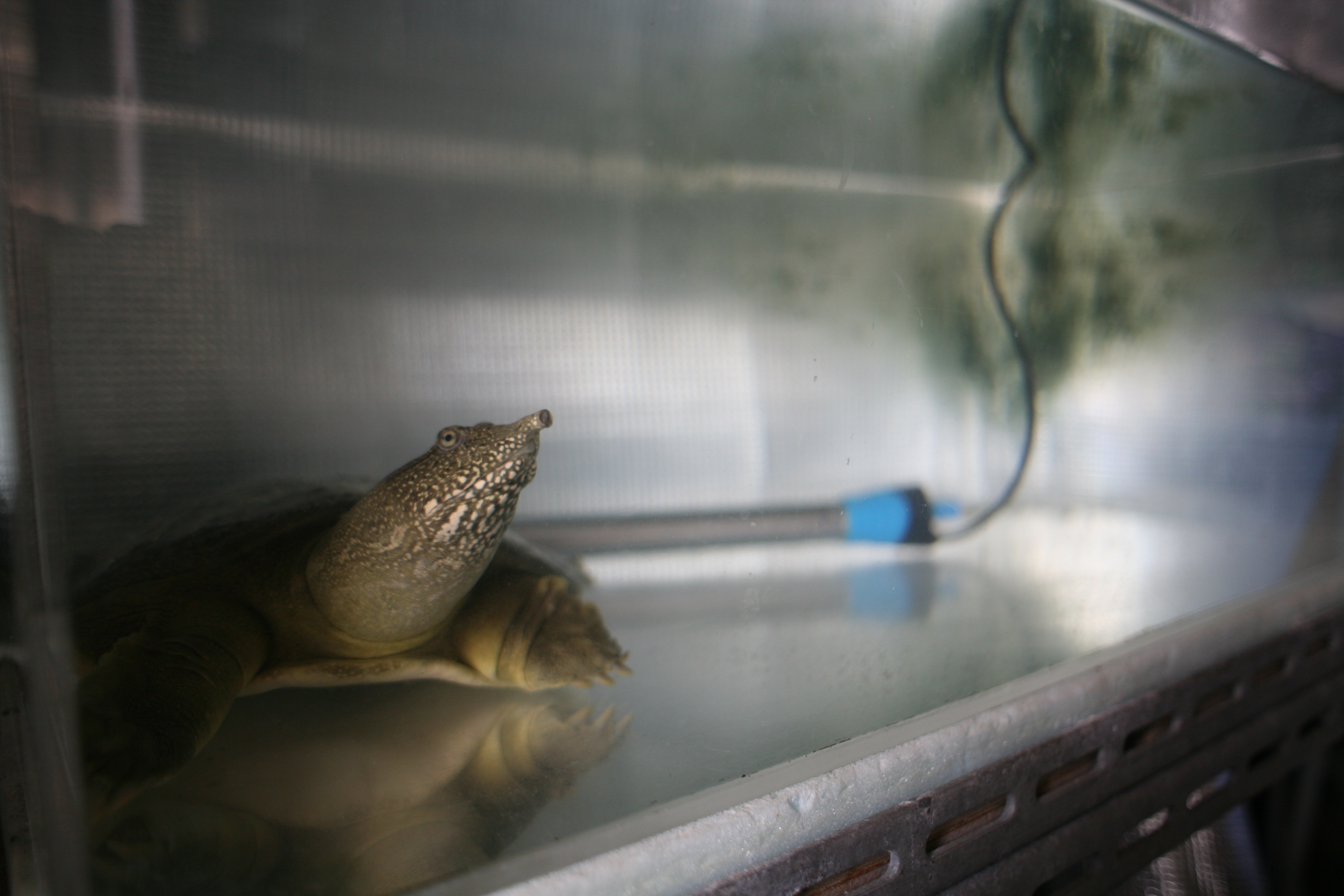 昨日、水カビ治療のため移動させたスッポンを撮影してみました。