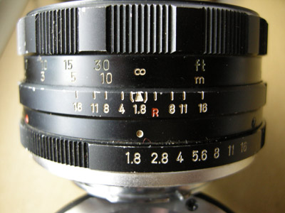 磨く前にマスキングテープを張って、差込口のマーキングをコピーしておきました。溶剤で磨くとヘリコイド上に書いた黒マジックのマーキングが消えるため。