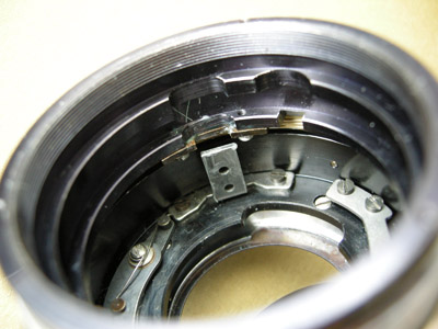 レンズユニット内に入っている絞りを動かすための金具がいっぱいついています。 |